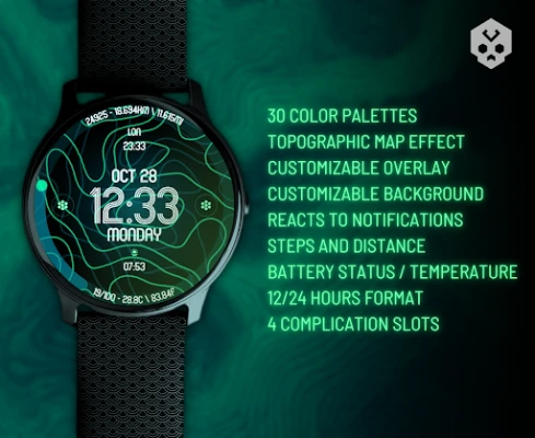 A watch face built using a beatiful topographic map animation, full of information and highly customizable!