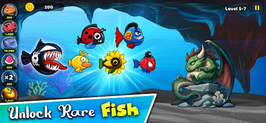 Feed to grow fish. Collect coins. Discover skillful pets. Shoot naughty monsters/aliens.