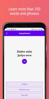 Learn the Serbian language. Over 350 popular words and phrases, listen, read, memorize, and test yourself through exercises. All words are divided into categories for convenience. There is a dictionary and two types of exercises: choosing the correct option and entering the word by letter.