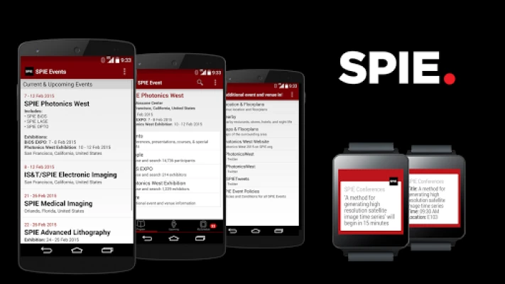 Hold the program and exhibition guides for all current and upcoming SPIE conferences and exhibitions, including SPIE Photonics West, SPIE DSS, and SPIE Optics + Photonics, in the palm of your hand.