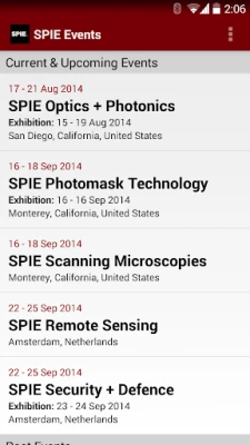 Hold the program and exhibition guides for all current and upcoming SPIE conferences and exhibitions, including SPIE Photonics West, SPIE DSS, and SPIE Optics + Photonics, in the palm of your hand.