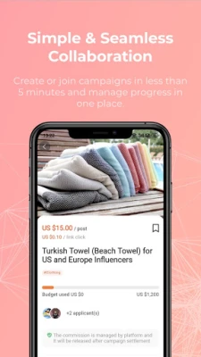 Robust and easy to use, we enable seamless collaboration possible by enabling you to submit your proposal and make a pitch to the brands in one place. Once your proposal is accepted, you can communicate with the brand and submit your works using our app, too.